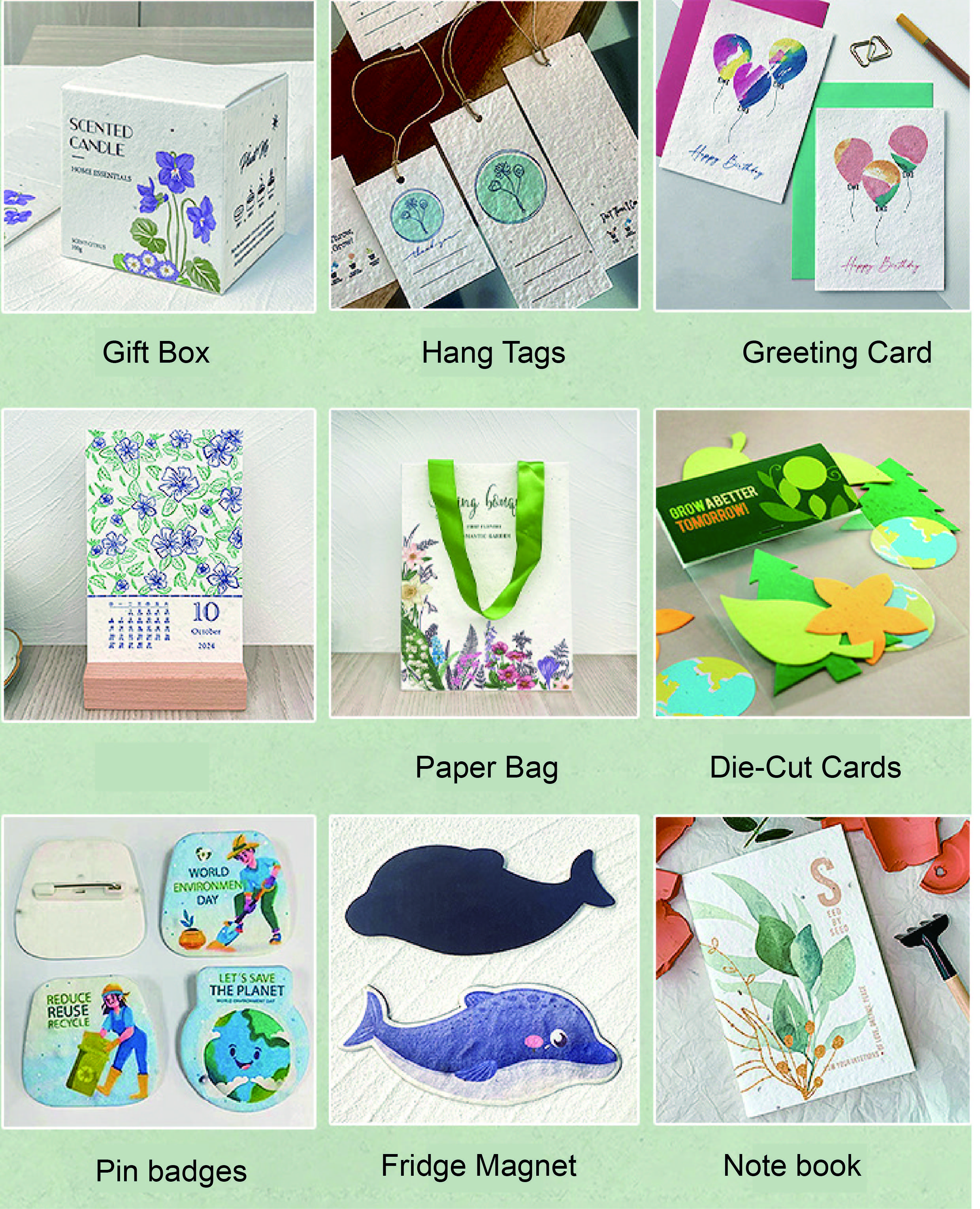 Beyond badges, seed paper can be crafted into a wide range of eco-friendly promotional items: